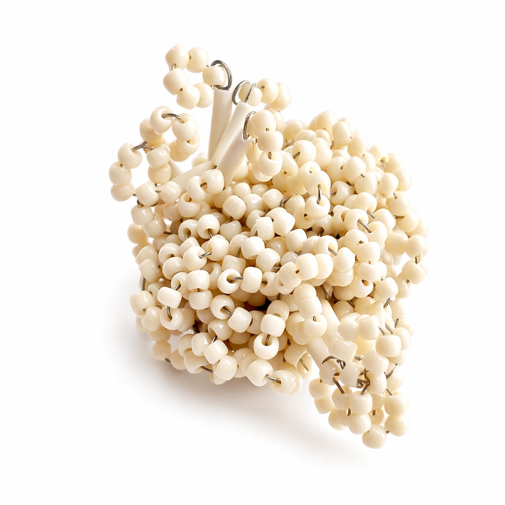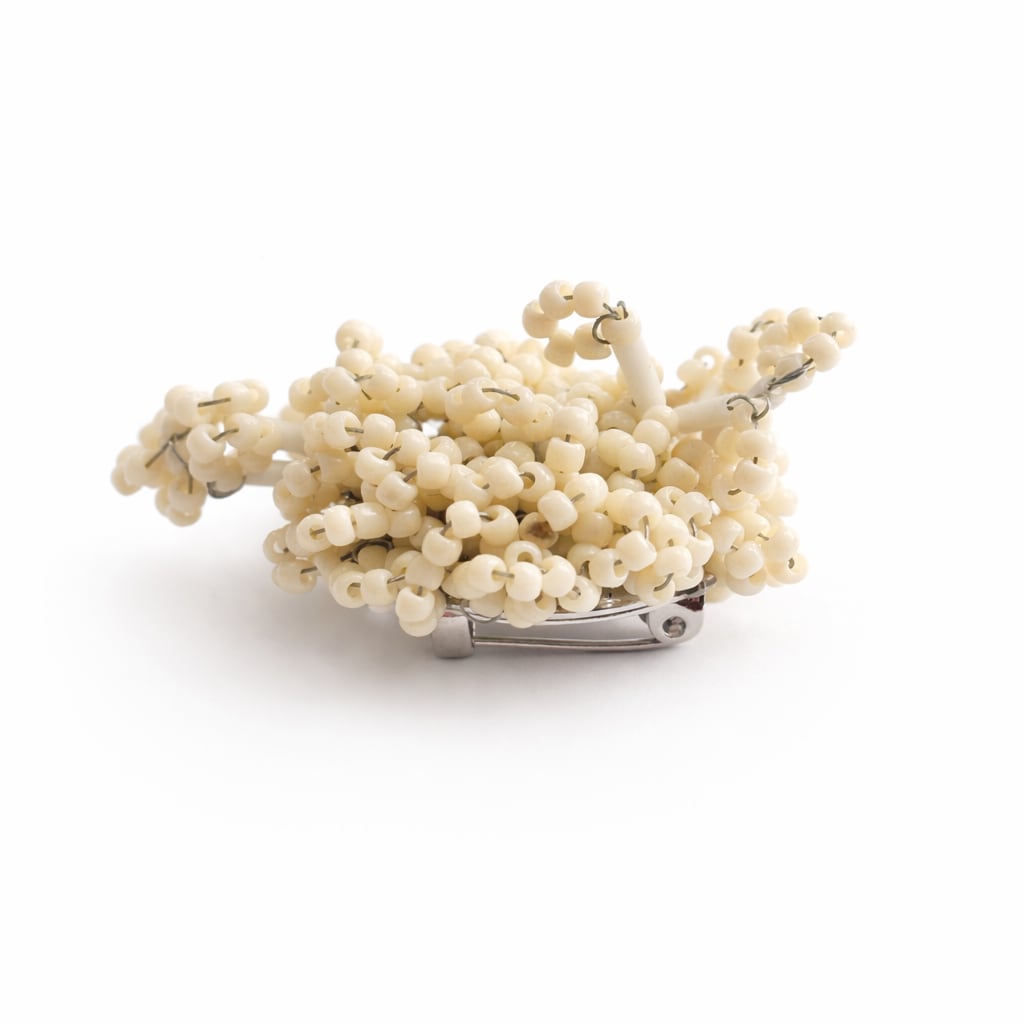 A one-of-a-kind brooch crafted with skin-toned ivory beads and wire.
