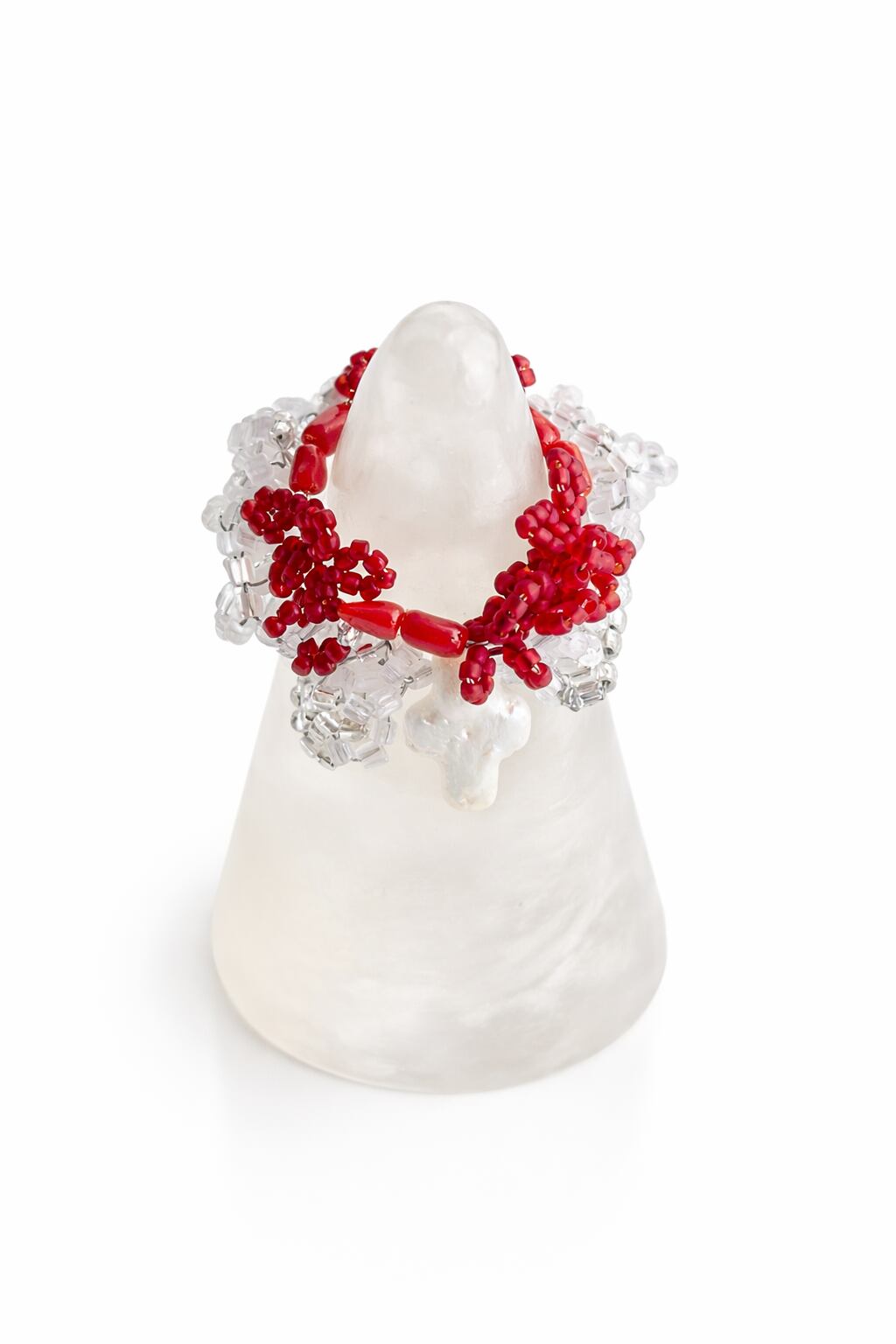 Made with freshly arrived slim coral beads and Japanese deadstock beads in a soft, frosted finish. Two different textures, one quiet color — easy to stack, easy to style.