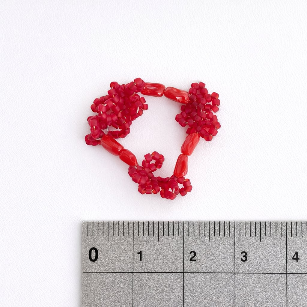 小粒ビーズのフリル部分がフリーサイズの大きな役目を果たす