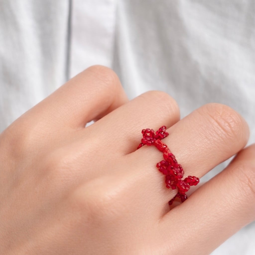 Frou-frou Raffiné red coral ring / free size/only one item