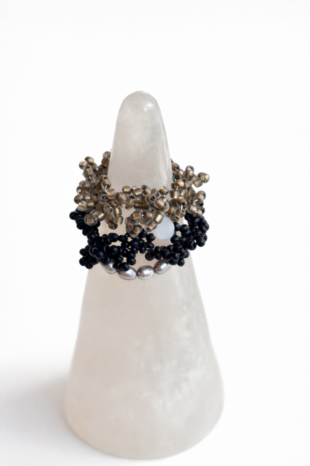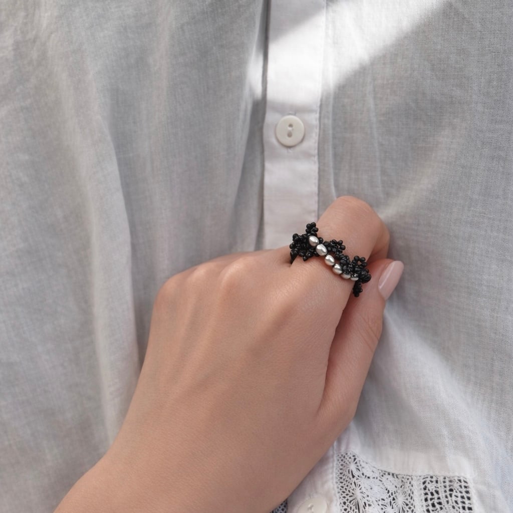 The bead frills stretch generously, sliding over the knuckle with ease — comfortable enough to wear from morning until night.