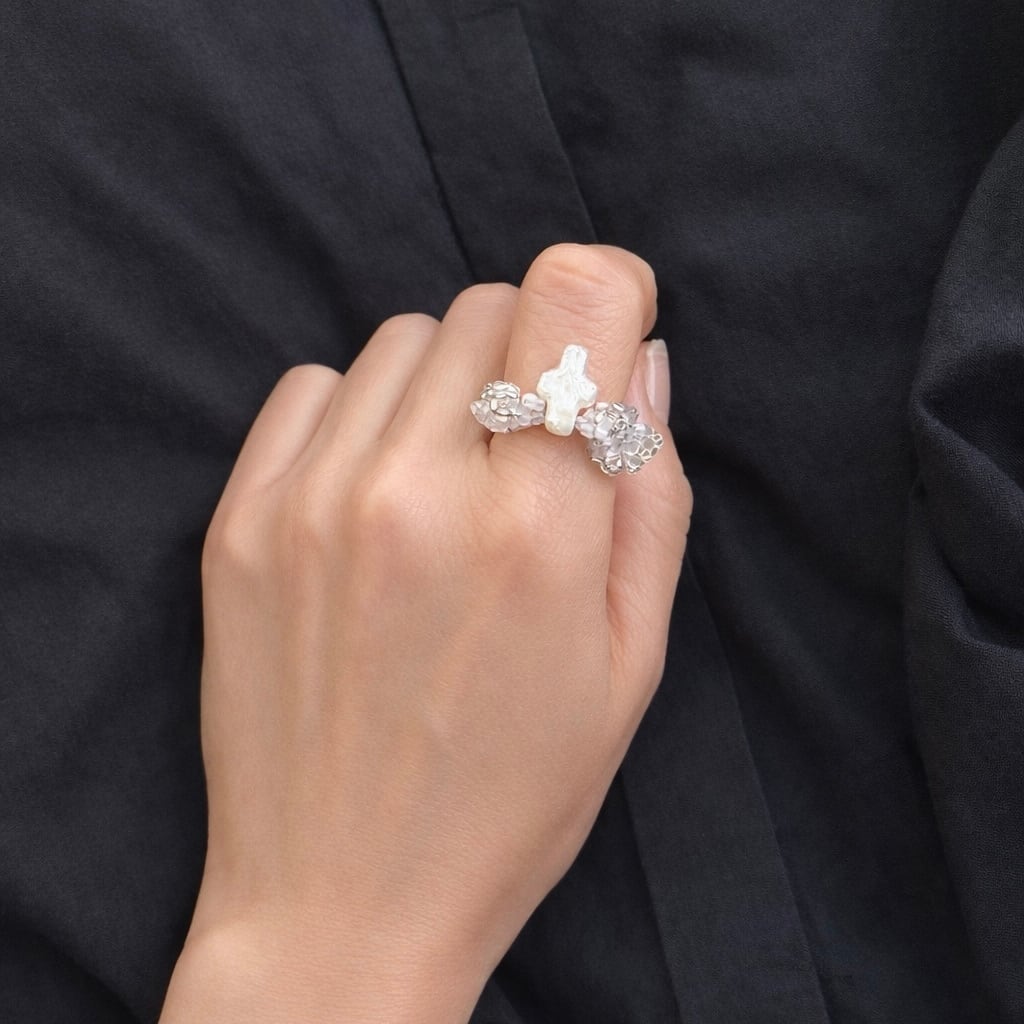 Frou-frou Raffiné cross pearl ring / free size/only one item