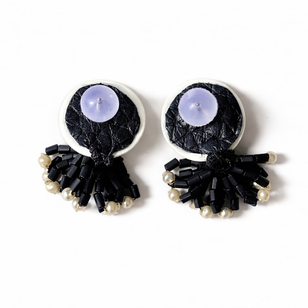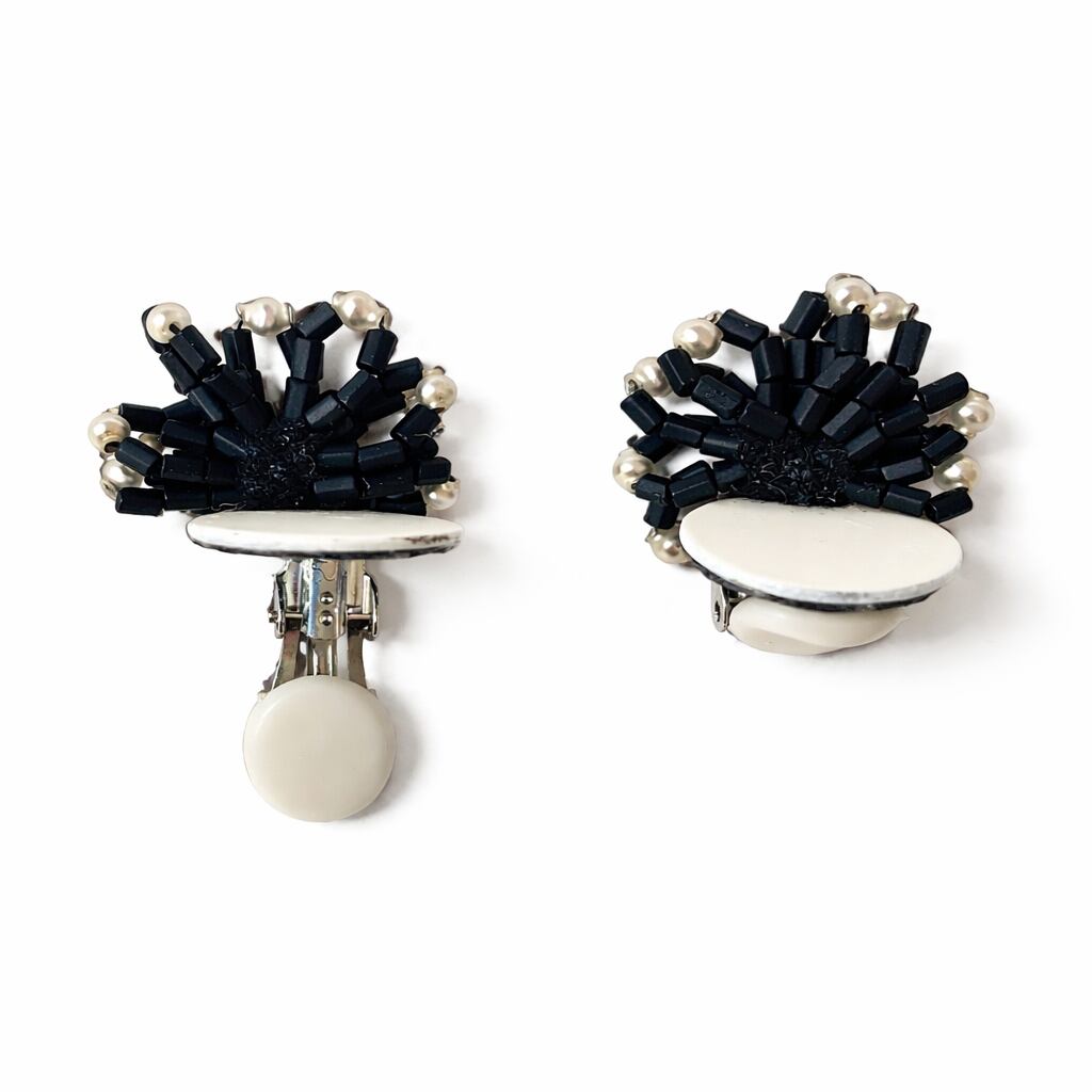 繊細で貴重なフランス製年代物のガラスビーズの一点物の耳飾り