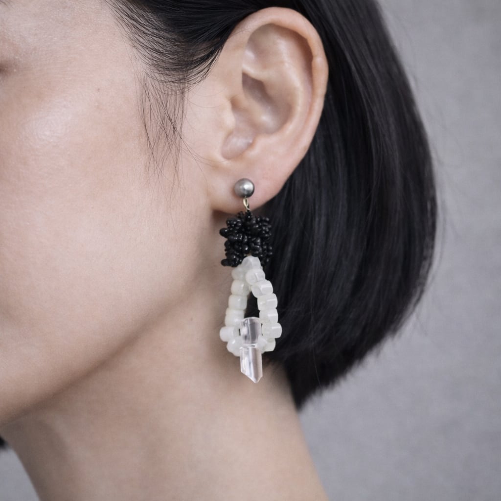 雫とクリスタルとフリルが揺れる–世界にひとつだけの耳飾り