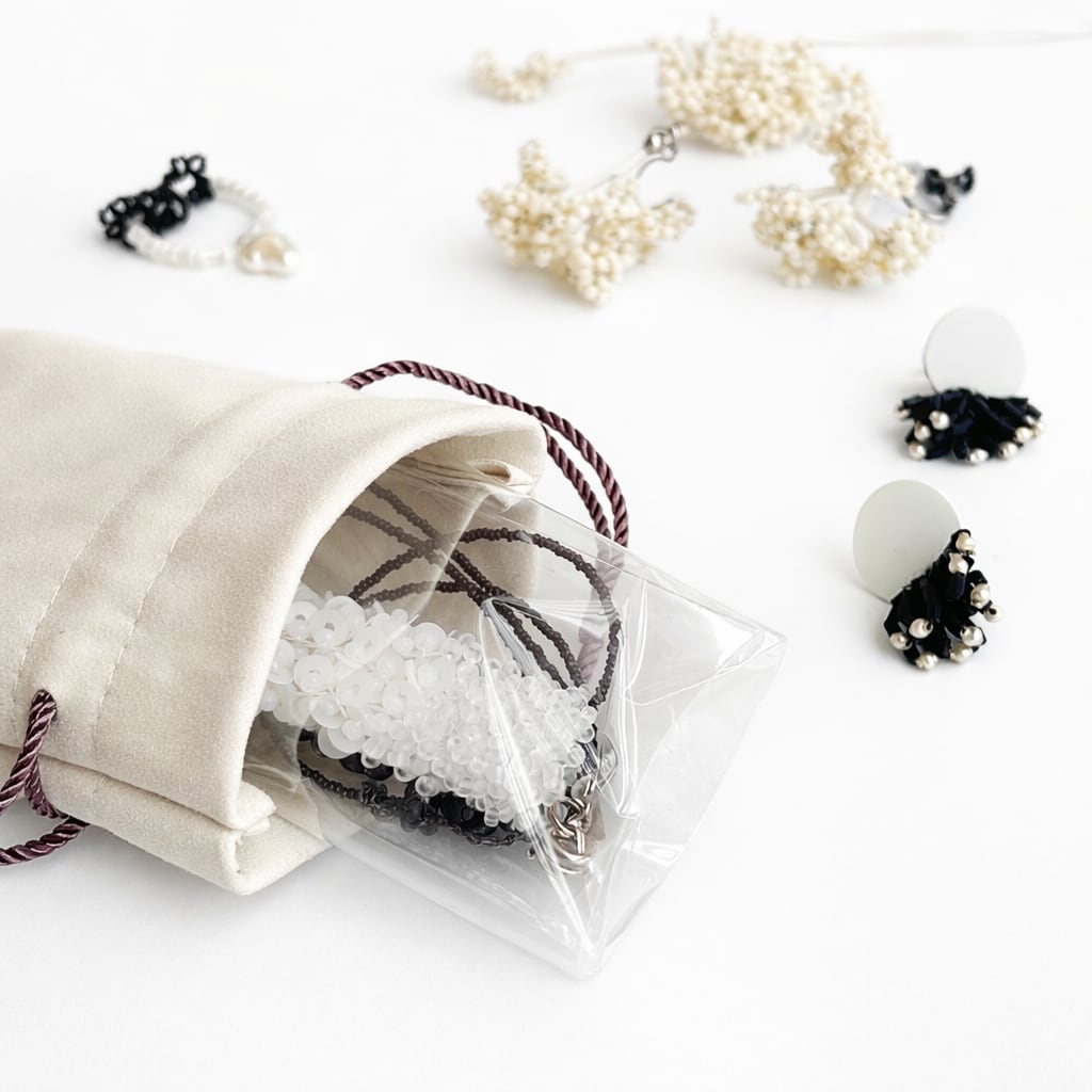 小粒ビーズのフリル部分がフリーサイズの大きな役目を果たしています。