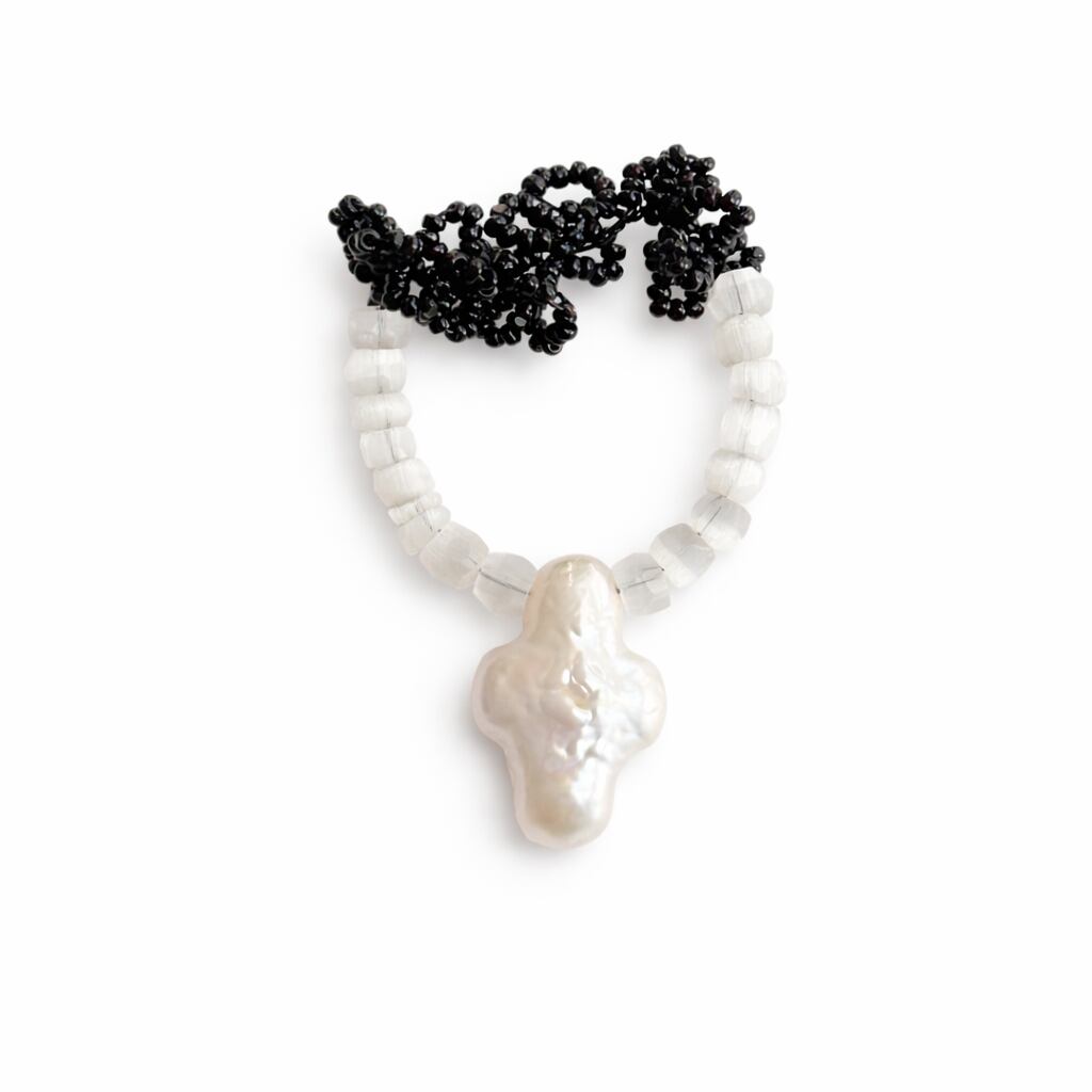 上品な艶感の半透明な白いビーズはフランス製の年代物ヴィンテージ。